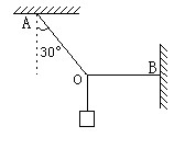 如圖所示,輕繩OA一端系于天花板上,與豎直方向的夾角為30O,水平輕繩OB的一端系于豎直墻上,O點(diǎn)掛一重物.如果繩OA能承受的最大拉力是300N,那么在O點(diǎn)最多能掛多重的重物?此時(shí)繩OB的拉力是多大?