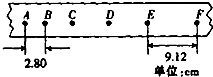在“測定勻變速直線運動的加速度”的實驗中,得到一條紙帶如圖所示.A、B、C、D、E、F為相鄰的6個計數(shù)點,若相鄰計數(shù)點的時間間隔為0. 1s,則粗測小車的加速度為