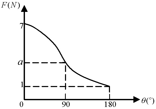 F1和F2的合力大小隨著他它們的夾角θ變化的關(guān)系如圖所示(F1、F2的大小均不變,且F1>F2)。則可知F1的大小為___N,F(xiàn)2的大小為___N,a的值為___N。