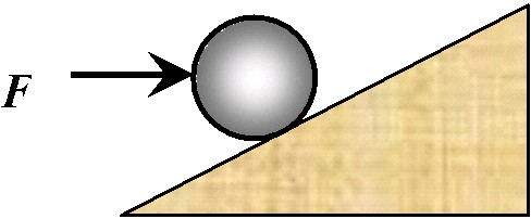 如圖所示,光滑小球在水平推力F的作用下,靜止在光滑的斜面上,已知球重為G,斜面傾角為,則斜面對小球的彈力大小為 [   ]