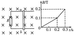 水平放置的平行導(dǎo)軌左邊接有電阻R=1.5Ω,軌道間距0.4m.且所在處有豎直向下的勻強磁場,磁場隨時間變化的關(guān)系如圖,金屬棒ab橫跨導(dǎo)軌兩端,其電阻r=0.5Ω,棒ab與電阻R相距1m.整個系統(tǒng)始終處于靜止?fàn)顟B(tài)求: