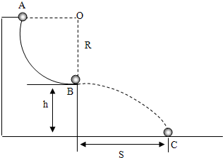 如圖所示,質量為m的小球由靜止開始從四分之一圓弧軌道的A點下滑,到B點離開軌道,最終落到水平面的C點.已知軌道B點處切線水平,軌道半徑為R,小球從B點到C點下落的高度為h,水平距離為S,求: