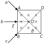 (2013?瀘州一模)如圖所示,正方形ABCD內(nèi)有垂直紙面向里的勻強(qiáng)磁場(chǎng),三個(gè)不計(jì)重力、質(zhì)量相同、帶電量相同的帶正電粒子a、b和c,以相同的速率分別沿AO、EO和BO方向垂直于磁場(chǎng)射入磁場(chǎng)區(qū)域,已知EO垂直AB,AO和BO分別是正方形ABCD的對(duì)角線方向,三個(gè)粒子從射入磁場(chǎng)到射出磁場(chǎng)所用時(shí)間分別為ta、tb、tc,下列給出的時(shí)間關(guān)系可能正確的是( 。
