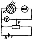 (2013?貴州模擬)如圖所示的實(shí)驗(yàn)電路,當(dāng)用黃光照射光電管中的金屬涂層時(shí),毫安表的指針發(fā)生了偏轉(zhuǎn).若將電路中的滑動變阻器的滑片P向右移動到某一位置時(shí),毫安表的讀數(shù)恰好減小到零,此時(shí)電壓表讀數(shù)為U.若再增加黃光照射的強(qiáng)度,毫安表