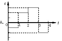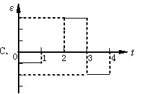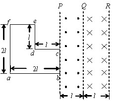 如圖所示,在PQ、QR區(qū)域是在在著磁感應(yīng)強度大小相等、方向相反的勻強磁場,磁場方向均垂直于紙面,bc邊與磁場的邊界P重合。導(dǎo)線框與磁場區(qū)域的尺寸如圖所示。從t=0時刻開始線框勻速橫穿兩個磁場區(qū)域。以a→b→c→d→e→f為線框中有電動勢的正方向。以下四個ε-t關(guān)系示意圖中正確的是