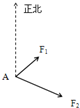 如圖所示,向正北方向勻速運(yùn)動(dòng)的質(zhì)點(diǎn)A受到三個(gè)力的作用,已知其中的兩個(gè)力F1和F2,請(qǐng)畫出F1和F2的合力及第三個(gè)力F3