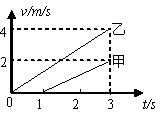 甲、乙兩質(zhì)點(diǎn)在一直線上做勻加速直線運(yùn)動(dòng)v——t圖象如圖所示,在3s末兩質(zhì)點(diǎn)在途中相遇,兩質(zhì)點(diǎn)出發(fā)點(diǎn)間的距離是:( )