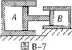 如圖B-7所示,大小不同的兩個汽缸A、B固定在水平面上,缸內(nèi)的橫截面積分別為SA和SB,已知SA=3SB.兩缸內(nèi)各有一個活塞,在兩個汽缸內(nèi)分別封閉一定質(zhì)量的空氣,并用水平桿相連.已知大氣壓為pA,汽缸A內(nèi)空氣的壓強為pA=1.2p0,不計活塞和汽缸間的摩擦阻力,求汽缸B內(nèi)空氣的壓強pB .