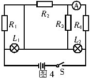 如圖4所示的電路,閉合開(kāi)關(guān)時(shí),燈L1、L2正常發(fā)光,由于電路出現(xiàn)故障,突然發(fā)現(xiàn)燈L1變亮,燈L2變暗,電流表的示數(shù)變小,根據(jù)分析,發(fā)生的故障可能是()
