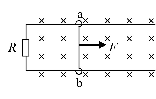 如圖所示,一U形光滑導(dǎo)軌串有一電阻R,放置在勻強(qiáng)的外磁場中,導(dǎo)軌平面與磁場方向垂直.一電阻可以忽略不計(jì)但有一定質(zhì)量的金屬桿ab跨接在導(dǎo)軌上,可沿導(dǎo)軌方向平移.現(xiàn)從靜止開始對(duì)ab桿施加向右的恒力F,若忽略桿和U形導(dǎo)軌的自感,則在桿的運(yùn)動(dòng)過程中,下列哪種說法是正確的?