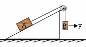 頂端裝有滑輪的粗糙斜面固定在地面上,A、B兩物體通過細(xì)繩如圖連接,并處于靜止?fàn)顟B(tài)(不計(jì)繩的質(zhì)量和繩與滑輪間的摩擦),F(xiàn)用水平力F作用于懸掛的物體B上,使其緩慢拉動(dòng)一小角度,發(fā)現(xiàn)A物體仍然靜止。則此過程中正確的選項(xiàng)是: