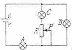 如圖所示的電路,A、B、C為三個(gè)相同的燈泡,其電阻大于電源內(nèi)阻,當(dāng)變阻器R的滑動觸頭P向上移動時(shí)