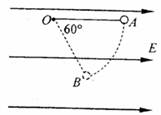 如圖所示,用長為l的絕緣細(xì)線拴一個質(zhì)量為m、帶電量為+q的小球(可視為質(zhì)點(diǎn))后懸掛于O點(diǎn),整個裝置處于水平向右的勻強(qiáng)電場E中。將小球拉至使懸線呈水平的位置A后,由靜止開始將小球釋放,小球從A點(diǎn)開始向下擺動,當(dāng)懸線轉(zhuǎn)過60°角到達(dá)位置B時,速度恰好為零。求: