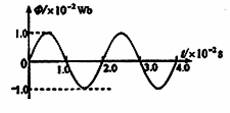 有一個小型發(fā)電機(jī),機(jī)內(nèi)的矩形線圈匝數(shù)為100匝,電阻為0.5Ω。線圈在勻強(qiáng)磁場中,以恒定的角速度繞垂直于磁場方向的固定軸轉(zhuǎn)動。穿過每匝線圈的磁通量φ隨時間的變化規(guī)律如圖所示。由此可知發(fā)電機(jī)電動勢瞬時值表