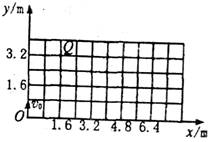 如圖所示,在豎直平面內(nèi)建立xOy直角坐標(biāo)系,Oy表示豎直向上的方向,已知該平面內(nèi)存在沿x軸負(fù)方向的區(qū)域足夠大的勻強(qiáng)電場,現(xiàn)有一個(gè)質(zhì)量為0.5kg,帶電荷量為2.5×10―4C的小球從坐標(biāo)原點(diǎn)O沿y軸正方向以某一初速度豎直向上拋出,它到達(dá)的最高點(diǎn)位置為圖中Q點(diǎn),不計(jì)空氣阻力,g取10m/s2