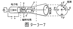 示波管是示波器的核心部件,它由電子槍、偏轉電極和熒光屏組成,如圖9-3-7所示.如果在熒光屏上P點出現亮斑,那么示波管中的