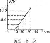 (4分)某同學(xué)在做“探究彈力和彈簧伸長的關(guān)系”的實驗時,將一輕彈簧豎直懸掛讓其自然下垂,測出其自然長度;然后在其下端施加外力F,測出彈簧的總長度L,改變外力F的大小,測出幾組數(shù)據(jù),作出外力F與彈簧總長度L的關(guān)系圖線如圖實-2-10所示.(實驗過程是在彈簧的彈性限度內(nèi)進行的)