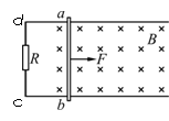 如圖所示,在水平面內(nèi)固定著足夠長(zhǎng)且光滑的平行金屬軌道,軌道間距L=0.40m,軌道左側(cè)連接一定值電阻R=0.80Ω。將一金屬直導(dǎo)線ab垂直放置在軌道上形成閉合回路,導(dǎo)線ab的質(zhì)量m=0.10kg、電阻r=0.20Ω,回路中其余電阻不計(jì)。整個(gè)電路處在磁感應(yīng)強(qiáng)度B=0.50T的勻強(qiáng)磁場(chǎng)中,B的方向與軌道平面垂直。導(dǎo)線ab在水平向右的拉力F作用下,沿力的方向以加速度a=2.0m/s2由靜止開始做勻加速直線運(yùn)動(dòng),求: