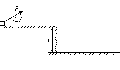木塊距平臺右邊緣10m,木塊與平臺間的動摩擦因數(shù)µ=0.2。用大小為F=20 N,方向與水平方向成37°角斜向上的力拉動木塊,當木塊運動到水平臺末端時撤去F。不計空氣阻力,g=10m/s2,sin37°=0.6,cos37°=0.8。求: