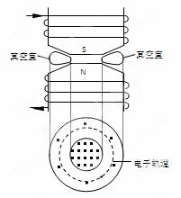 現(xiàn)代科學(xué)研究中常用到高速電子,電子感應(yīng)加速器就是利用感生電場(chǎng)加速電子的設(shè)備。電子感應(yīng)加速器主要有上、下電磁鐵磁極和環(huán)形真空室組成。當(dāng)電磁鐵繞組通以變化的電流時(shí),產(chǎn)生變化的磁場(chǎng),穿過(guò)真空盒所包圍的區(qū)域內(nèi)的磁通量也隨時(shí)間變化,這時(shí)真空盒空間內(nèi)就產(chǎn)生感應(yīng)渦旋電場(chǎng),電子將在渦旋電場(chǎng)作用下得到加速。如圖所示(上圖為側(cè)視圖、下圖為真空室的俯視圖),若電子被“約束”在半徑為R的圓周上運(yùn)動(dòng),當(dāng)電磁鐵繞組通有圖中所示的電流時(shí):