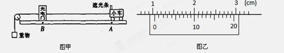(2)若用游標(biāo)卡尺測(cè)出光電門遮光條的寬度d如圖乙所示,則d = cm;實(shí)驗(yàn)時(shí)將小車從圖示位置由靜止釋放,由數(shù)字計(jì)時(shí)器讀出遮光條通過(guò)光電門的時(shí)間?t,則小車經(jīng)過(guò)光電門時(shí)的速度為 (用字母表示);