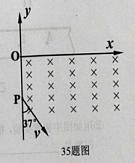 (2013廣東省珠海市期末)如圖所示,在平面直角坐標(biāo)系xoy的第四象限有垂直紙面向里的勻強(qiáng)磁場,一質(zhì)量為m=5.0×10-8kg、電量為q=1.0×l0-6 C的帶電粒子.從靜止開始經(jīng)U0=10V的電壓加速后,從P點(diǎn)沿圖示方向進(jìn)入磁場,已知OP=30cm,(粒子重力不計(jì),sin 37°= 0.6,cos37°= 0.8),求: