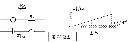 某同學(xué)用如圖a所示的電路測量電源的電動(dòng)勢和內(nèi)阻,其中R是電阻箱,R0是定值電阻,且R0=3000Ω,G是理想電流計(jì)。改變R的阻值分別讀出電流計(jì)的讀數(shù),做出1/R—1/I圖像如圖b所示,則:電源的電動(dòng)勢是 ,內(nèi)阻是