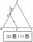 如圖所示,有一束平行于等邊三棱鏡截面ABC的單色光從空氣射向E點(diǎn),并偏折到F點(diǎn)。已知入射方向與邊AB的夾角為θ=30°,E、F分別為邊AB、BC的中點(diǎn),則( )