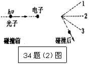 康普頓效應(yīng)證實(shí)了光子不僅具有能量,也有動(dòng)量.右圖給出了光子與靜止電子碰撞后,電子的運(yùn)動(dòng)方向,則碰后光子:( )