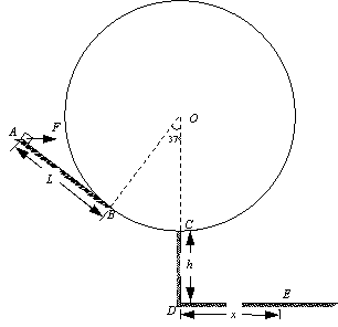 如圖所示,一粗糙斜面 AB 與圓心角為37°的光滑圓弧 BC 相切,經(jīng)過 C 點(diǎn)的切線方向水平.已知圓弧的半徑為 R = 1.25 m,斜面 AB 的長度為 L = 1 m .質(zhì)量為 m = 1 kg的小物塊(可視為質(zhì)點(diǎn))在水平外力 F = 1 N作用下,從斜面頂端 A點(diǎn)處由靜止開始,沿斜面向下運(yùn)動,當(dāng)?shù)竭_(dá) B 點(diǎn)時(shí)撤去外力,物塊沿圓弧滑至 C 點(diǎn)拋出,若落地點(diǎn) E 距離與 C 點(diǎn)間的水平距離為 x = 1.2 m,C 點(diǎn)距離地面高度為 h = 0.8 m.(sin37°= 0.6,cos37°= 0.8 ,重力加速度 g 取10 m/s2)求: