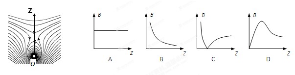 磁場(chǎng)的磁感線分布情況,以O點(diǎn)(圖中白點(diǎn))為坐標(biāo)原點(diǎn),沿Z軸正方向磁感應(yīng)強(qiáng)度B大小的變化最有可能為( )