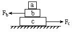 如圖所示,物體a、b和c疊放在水平桌面上,水平為Fb=5N、Fc=10N分別作用于物體b、c上,a、b和c仍保持靜止。以f1、f2、f3分別表示a