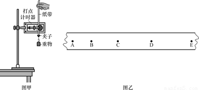 D.重復(fù)步驟 C幾次,從打出的紙帶中選取較理想的一條如圖乙,測出紙帶上一些連續(xù)點的距離為AB=5.8mm,BC=9.8mm,CD=13.6mm,DE=17.6mm;
