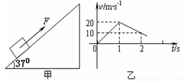 如圖甲所示,質(zhì)量為m=1kg的物體置于傾角為θ=37°固定斜面上(斜面足夠長),對物體施加平行于斜面向上的恒力F,作用時間t1=1s時撤去拉力,物體運動的部分v-t圖像如圖乙所示,設(shè)物體受到的最大靜摩擦力等于滑動摩擦力,取g=10m/s2。(sin37°=0.6,cos37°=0.8)試求: