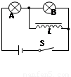 如圖所示電路中,L為電感線圈,電阻不計(jì),A、B為兩燈泡,則 ( )