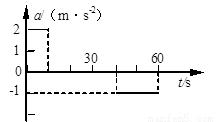 (10分)汽車由靜止開始在平直的公路上行駛,0~60s內(nèi)汽車的加速度隨時(shí)間變化的圖象如圖所示。