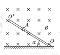 (16分)如圖所示,在磁感應(yīng)強(qiáng)度為B的水平勻強(qiáng)磁場中,有一足夠長的絕緣細(xì)棒OO′在豎直平面內(nèi)垂直于磁場方向放置,細(xì)棒與水平面夾角為α。一質(zhì)量為m、帶電荷量為+q的圓環(huán)A套在OO′棒上,圓環(huán)與棒間的動摩擦因數(shù)為μ,且μ<tanα,現(xiàn)讓圓環(huán)A由靜止開始下滑,試問圓環(huán)在下滑過程中: