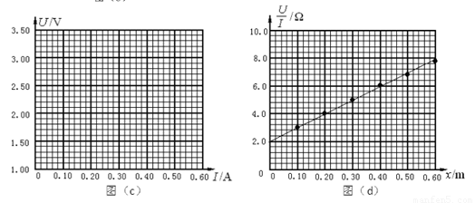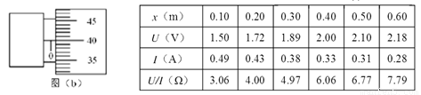 ⑵實驗時閉合開關(guān),調(diào)節(jié)P的位置,記錄aP長度x和對應(yīng)的電壓U、電流I等相關(guān)數(shù)據(jù),如下表: