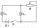 在如圖所示的電路中,電源的電動勢為E,內(nèi)電阻為r、L1、L2是兩個小燈泡,閉合S后,兩燈均能發(fā)光.當(dāng)滑動變阻器的滑片向右滑動時,會出現(xiàn)( )