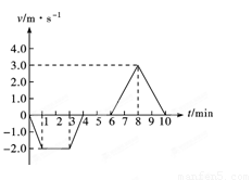 2012年6月24日,中國(guó)第一臺(tái)自行設(shè)計(jì)、自主集成研制的深海載人潛水器——“蛟龍”號(hào)在西太平洋的馬里亞納海溝下潛深度超過(guò)7000米,預(yù)示著中國(guó)已經(jīng)有能力征服全球99.8%的海底世界。假設(shè)在某次實(shí)驗(yàn)時(shí),“蛟龍”號(hào)從水面開(kāi)始下潛到最后返回水面共歷時(shí)10min,其速度隨時(shí)間的變化如圖所示,則“蛟龍”號(hào)( )