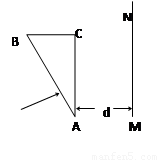 (10分)如圖所示,有一截面是直角三角形的棱鏡ABC,∠A=30º.它對紅光的折射率為n1.對紫光的折射率為n2.在距AC邊d處有一與AC平行的光屏.現(xiàn)有由以上兩種色光組成的很細的光束垂直AB邊射入棱鏡.