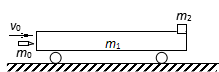 (10分)如圖所示,一質(zhì)量m1=0.45kg的平頂小車靜止在光滑的水平軌道上.車頂右端放一質(zhì)量m2=0.2kg的小物體,小物體可視為質(zhì)點.現(xiàn)有一質(zhì)量m0=0.05kg的子彈以水平速度v0=100m/s射中小車左端,并留在車中,最終小物塊以5m/s的速度與小車脫離.子彈與車相互作用時間很短. g取10m/s2.求: