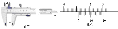 圖甲為一游標(biāo)卡尺的結(jié)構(gòu)示意圖,當(dāng)測量一鋼筆帽的內(nèi)徑時(shí),應(yīng)該用游標(biāo)卡尺的__________(填“A”“B”或“C”)進(jìn)行測量;示數(shù)如圖乙所示,該鋼筆帽的內(nèi)徑為________mm。