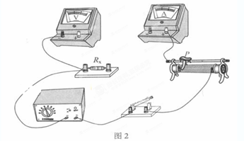 (3)接通開關(guān),改變滑動(dòng)變阻器畫片P的位置,并記錄對(duì)應(yīng)的電流表示數(shù)I、電壓表示數(shù)U。某次電表示數(shù)如圖3所示,可得該電阻的測量值RX=U/I= Ω(保留兩位有效數(shù)字)。