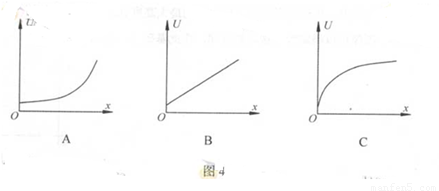 (5)再不損壞電表的前提下,將滑動(dòng)變阻器滑片P從一端滑向另一端,隨滑片P移動(dòng)距離x的增加,被測電阻RX兩端的電壓U也隨之增加,下列反映U-x關(guān)系的示意圖中正確的是 。