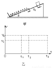 (3)從滑塊靜止釋放瞬間開(kāi)始計(jì)時(shí),請(qǐng)?jiān)谝覉D中畫(huà)出滑塊在沿斜面向下運(yùn)動(dòng)的整個(gè)過(guò)程中速度與時(shí)間關(guān)系v-t圖象。圖中橫坐標(biāo)軸上的t1、t2及t3分別表示滑塊第一次與彈簧上端接觸、第一次速度達(dá)到最大值及第一次速度減為零的時(shí)刻,縱坐標(biāo)軸上的v1為滑塊在t1時(shí)刻的速度大小,vm是題中所指的物理量。(本小題不要求寫(xiě)出計(jì)算過(guò)程)