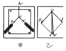 “研究共點(diǎn)力的合成”的實(shí)驗(yàn)情況如圖甲所示,其中A為固定橡皮筋的圖釘,O為橡皮筋與細(xì)繩的結(jié)點(diǎn),OB和OC為細(xì)繩,圖乙是在白紙上根據(jù)實(shí)驗(yàn)結(jié)果畫出的圖示。