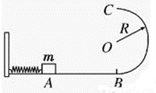 (10分)如圖所示,光滑水平面AB與豎直面內(nèi)的半圓形導(dǎo)軌在B點(diǎn)相接,導(dǎo)軌半徑為R.一個(gè)質(zhì)量為m的物體將彈簧壓縮至A點(diǎn)后由靜止釋放,在彈力作用下物體獲得某一向右速度后脫離彈簧,脫離彈簧后當(dāng)它經(jīng)過(guò)B點(diǎn)進(jìn)入導(dǎo)軌瞬間對(duì)導(dǎo)軌的壓力為其重力的7倍,之后向上運(yùn)動(dòng)完成半個(gè)圓周運(yùn)動(dòng)恰好到達(dá)C點(diǎn)。試求: