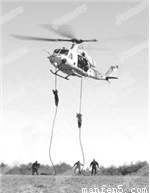 (10分)特戰(zhàn)隊員從懸停在空中離地55m高的直升機上沿繩下滑進行降落訓練,某特戰(zhàn)隊員和他攜帶的武器質量共為80kg,設特戰(zhàn)隊員用特制的手套輕握繩子時可獲得200N的摩擦阻力,緊握繩子時可獲得1000N的摩擦阻力,下滑過程中特戰(zhàn)隊員至少輕握繩子才能確保安全,(