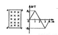 矩形導(dǎo)線框abcd固定在勻強(qiáng)磁場(chǎng)中,磁感線的方向與線框所在的平面垂直,規(guī)定磁場(chǎng)的正方向垂直紙面向里,磁感線應(yīng)強(qiáng)度B隨時(shí)間t變化規(guī)律如圖所示,若規(guī)定逆時(shí)針?lè)较驗(yàn)楦袘?yīng)電流的正方向,則下列各圖正確的是